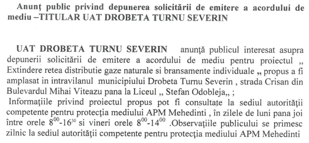 Anunt Mehedinti Gaz sa